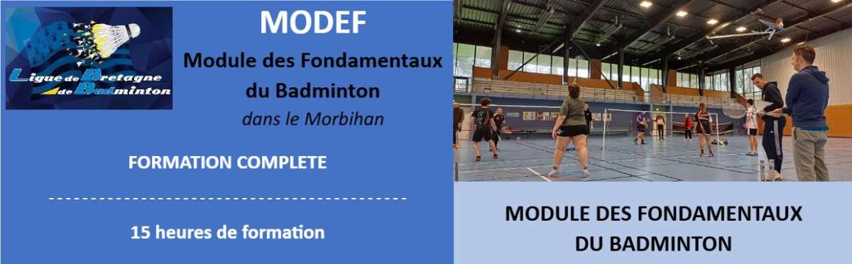 Une formation MODEF est prévue les 02-03 mai 2026 à Quimperlé, organisée en partenariat avec le Comité 29 et avec le soutien logistique du Badminton Club Kemperle.