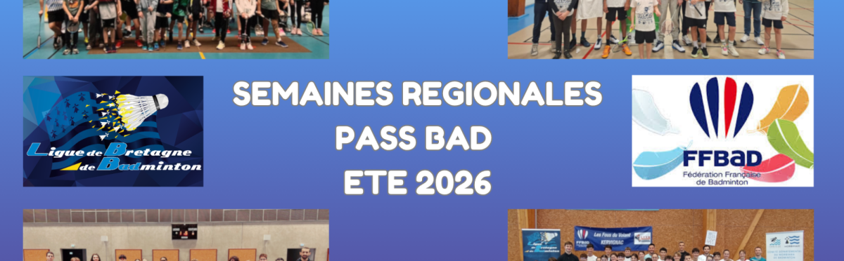 Comme chaque saison, la Ligue de Bretagne de Badminton organise en partenariat avec les Comités Départementaux et les clubs supports les Semaines Régionales Pass Bad. Deux périodes sont identifiées : une en hiver (décembre/janvier) et une en été (mai/juin).