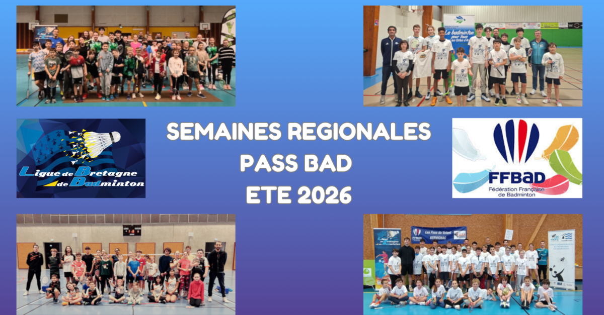 Comme chaque saison, la Ligue de Bretagne de Badminton organise en partenariat avec les Comités Départementaux et les clubs supports les Semaines Régionales Pass Bad. Deux périodes sont identifiées : une en hiver (décembre/janvier) et une en été (mai/juin).